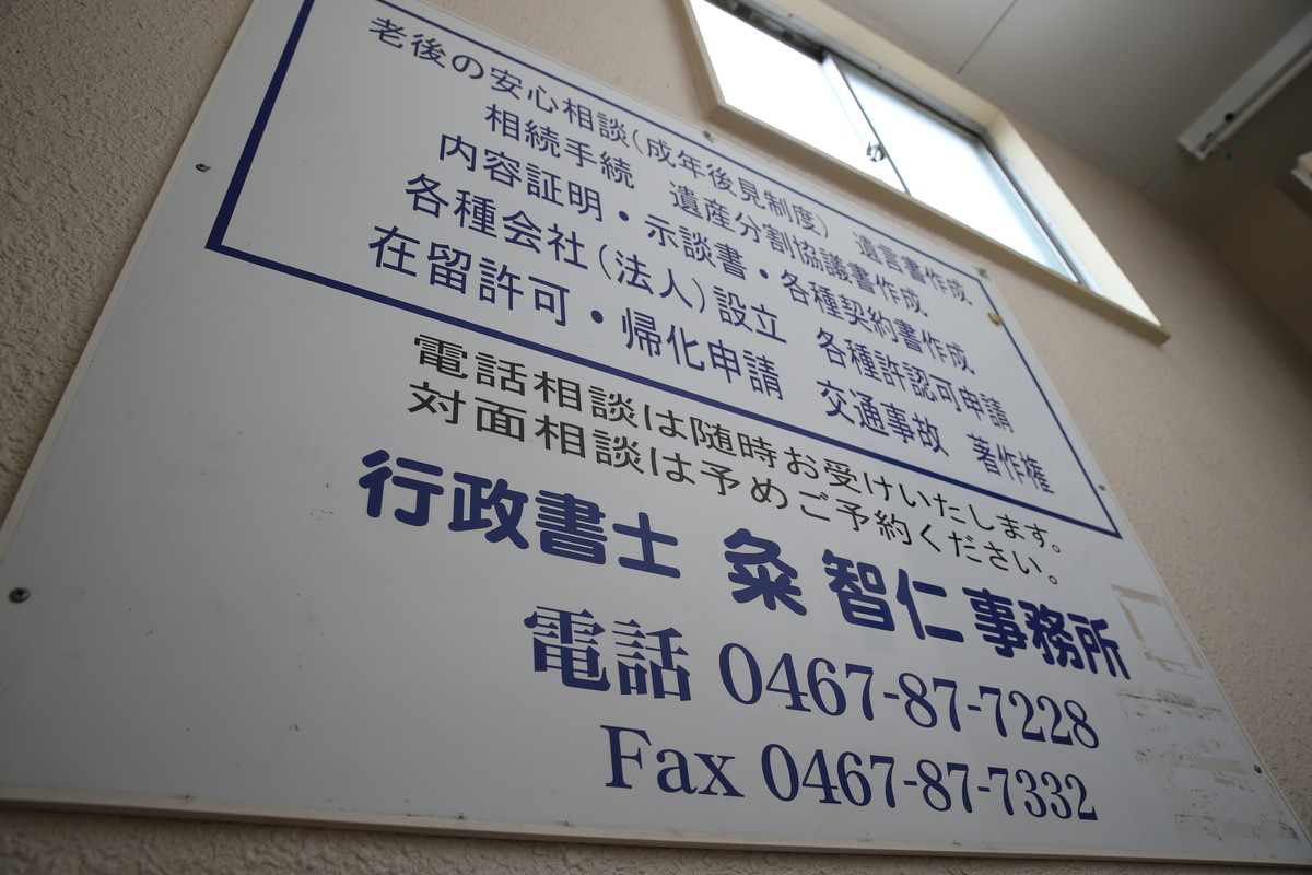 専門家の仕事の区分は決まっている。行政書士というのは名前の通り行政へ提出す る書類を作成することが主たる仕事だ。粂は言う。